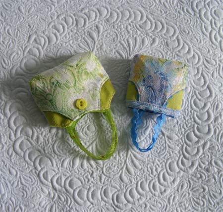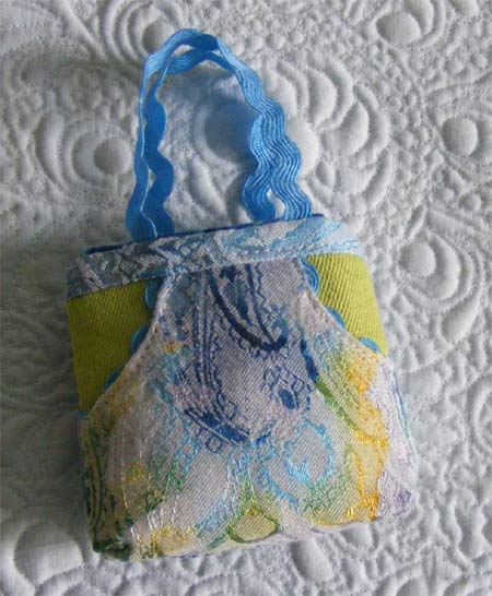 Hmm, although even you yourself admit you are crazy, I cannot help but admire what you have achieved, not only are the large bags gorgeous, those small ones are just so cute, you ought to mount them in a box frame Geta, they would look lovely as a set on the wall. with some hooks underneath to hang the big sister from. I too am crazy, sometimes, and am thinking, can I do these??????