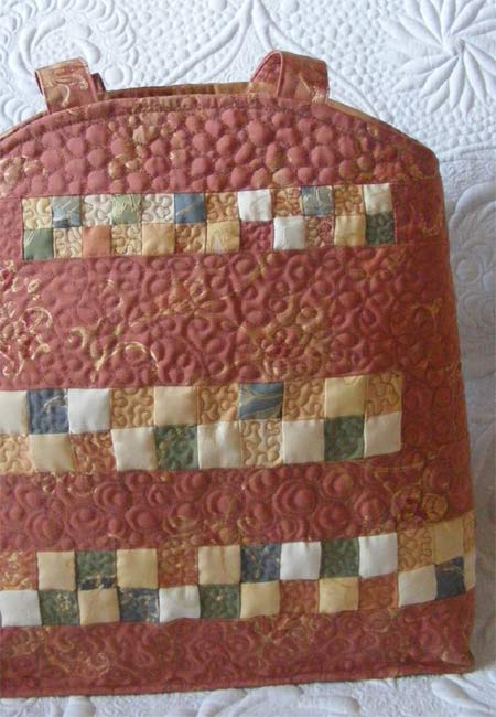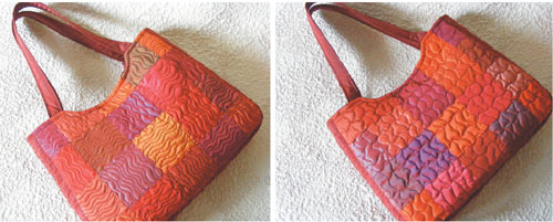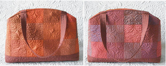 Piecing is a little difficult because of the slippery fabrics, but after that I quilt the pieced fabric, than I cut the panels for bags than there is no problem to assemble a bag…